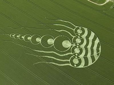 英国发现迄今最大麦田怪圈:巨型水母入侵