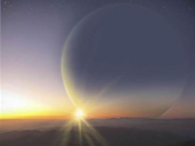 艺术家为环绕行星PH2b运行的一颗卫星创作的构想图。科学家说像影片《阿凡达》中潘...