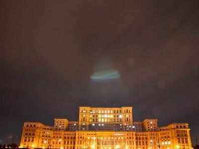 罗马尼亚议会大楼上空惊现疑似UFO神秘光环