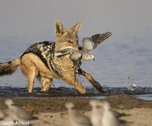 正在捕猎的豺 在非洲、中东、欧洲东南和亚洲南部分布着3种豺。它们属于食肉...
