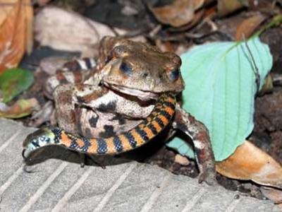 蟾蜍吞蛇 2009年6月3日下午4点,重庆市民冉隆中在青城山旅游的时候,意外...