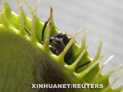 食蝇草猎杀蚂蚁 6月23日,在新加坡,一株食蝇草杀死了一只挣脱未果的蚂蚁。这种...