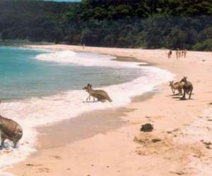 澳大利亚男子赫斯特日前声称,他看见一只袋鼠跳过海滩,游进海里,后遭到一条7...