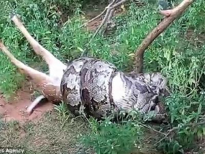 斯里兰卡本达拉国家公园四米蟒蛇吞下整只鹿