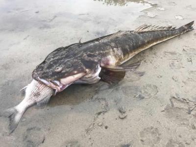 巨型鯒鱼(牛尾鱼)狼吞大欧鳊被活活噎死