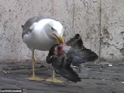 意大利首都罗马街头海鸥猎食鸽子视频:意大利首都罗...