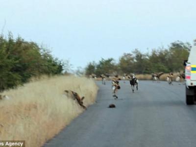 南非克鲁格国家公园大象斗野狗,在旁游客险遭殃视频...