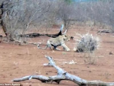 南非克鲁格国家公园花豹想要猎食2头豪猪,结果弄得...