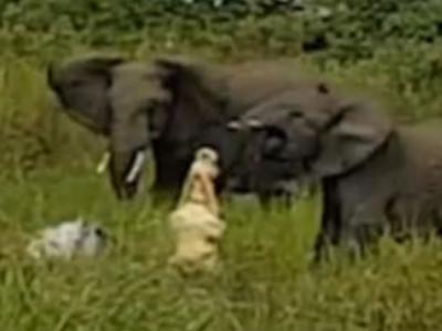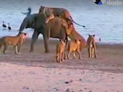 落单小象被14只狮子包围,最后甩掉猎食者捡回一命(...