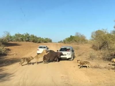 南非克鲁格尔国家公园河马遭狮子咬背,失常发狂咬路过车辆 (神秘的地球u...