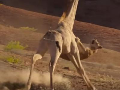 BBC行星地球(地球脉动)II:草原狮子试图想掠食长颈鹿被踢翻在地 视...