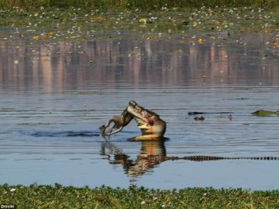 澳洲沼泽4公尺大鳄鱼30秒把袋鼠吞下肚 相关视频:鳄鱼撕碎同类 (神...