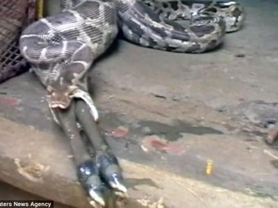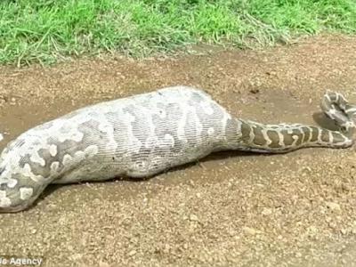 印度3.6公尺蟒蛇吞下整头羚羊 最后反刍吐