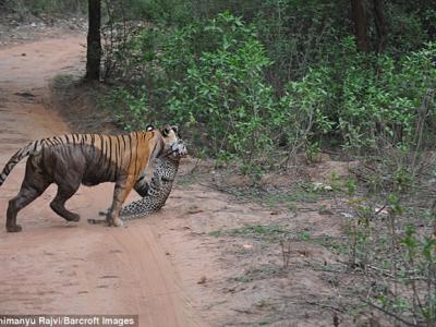 印度萨里斯卡野生动物禁猎区老虎猎杀花豹 视频:印度萨里斯卡野生动物...