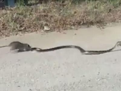 鼠蛇大战:老鼠妈妈为救孩子冒着生命危险咬住蛇尾巴 视频:老鼠妈妈为...