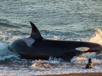 阿根廷巴塔哥尼亚杀人鲸为捕海狮冒险游到