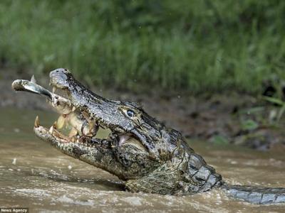 意大利摄影师拍到巴西一条大鱼捕获小鱼后再成为鳄鱼猎物的经过 (神秘的地球...
