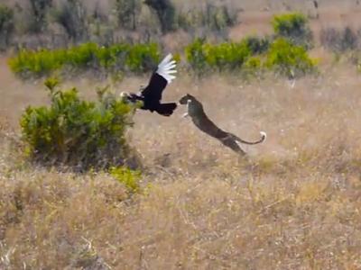 豹扑向犀鸟 犀鸟神奇地从豹口中挣脱 (神秘的地球报道)非洲的草原一直奉行着...