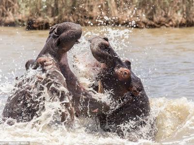 南非伊西曼格利索湿地公园老河马和年轻河马为争夺领地激战 (神秘的地球...
