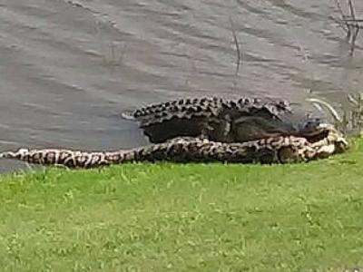 美国佛罗里达州男子打高尔夫球惊见鳄鱼与巨蟒大战 (神秘的地球报道)据环球网...