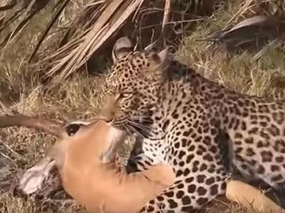 花豹为了让这只黑斑羚窒息而紧紧咬住它的嘴 (神秘的地球报道)据ETtoday(天使...