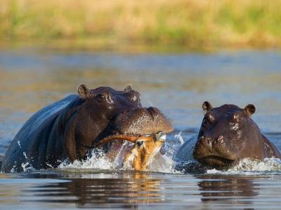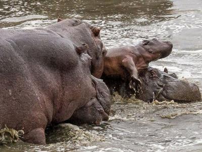 津巴布韦万基国家公园生仅2天的河马幼崽随母亲加入族群被成年河马围攻...