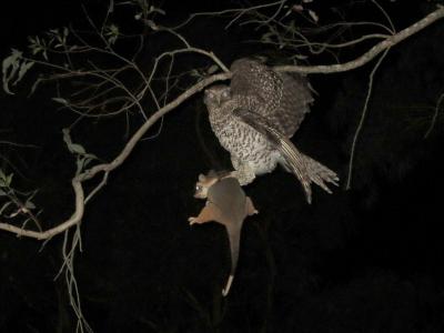 澳大利亚灰色猫头鹰俯冲捕食负鼠的精彩瞬间