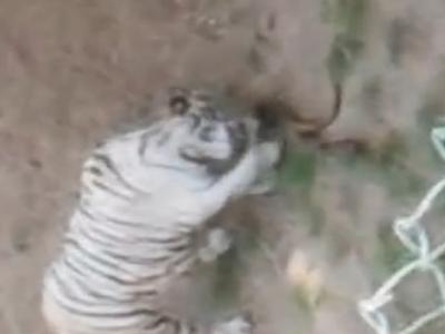 印度中央邦动物园出现一场虎蛇大战:白虎