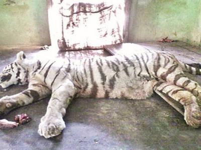 白虎被发现中毒身亡 白虎不停朝眼镜蛇攻击 (神秘的地球报道)白虎强壮凶猛,...