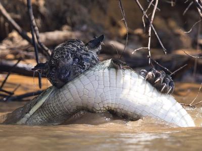 巴西潘特纳尔湿地美洲豹猎杀凯门鳄失败