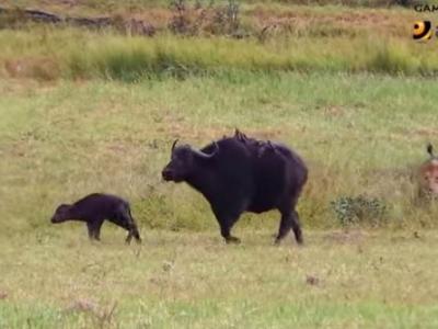小水牛落单被狮子捕杀 水牛妈妈奋力营救