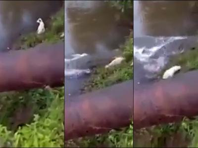 小狗河边散步险成巨鳄午餐 (神秘的地球报道)互联网近日流传一段影片,可见一只...