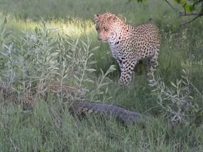 南非克鲁格国家公园蜥蜴击退美洲豹