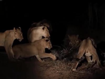 南非克留格尔国家公园落单豪猪吓退17头狮子
