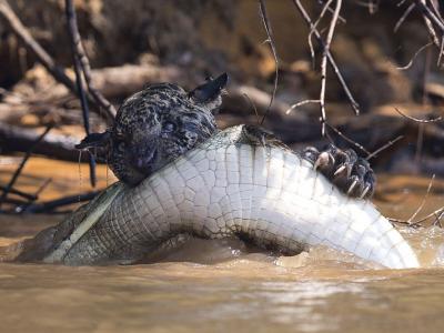 雌性美洲豹攻击凯门鳄 (神秘的地球报道)据国际在线:巴西摄影师拍摄了一...