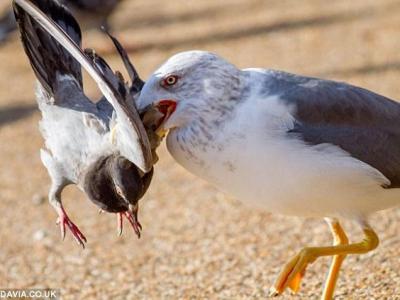 英国伦敦海德公园“杀手海鸥”猎杀白鸽