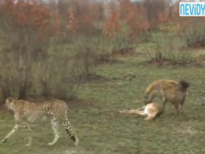 一只黑斑羚在猎豹和鬣狗夹杀下装死逃生