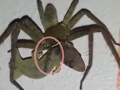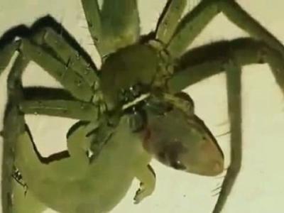 网民拍下巨蜘蛛生吞四脚蛇的场面