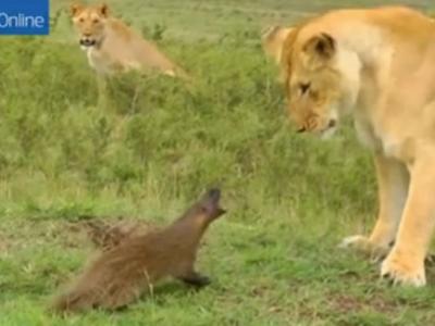 肯尼亚草原一只獴对峙4只狮子后全身而退 (神秘的地球报道)据中新网:狮子有...