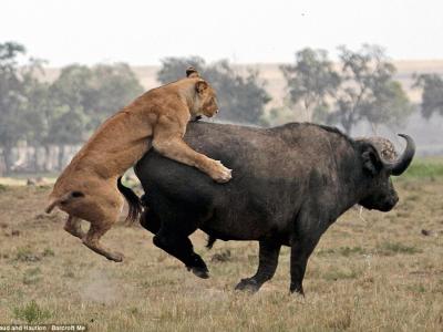 肯尼亚马赛马拉国家野生动物保护区三只狮子围捕水牛失败 (神秘的地球报道)据环...