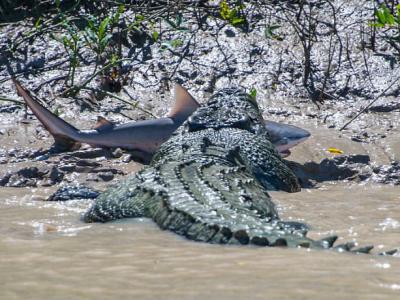 澳洲老鳄鱼捕杀鲨鱼报“失腿之仇”