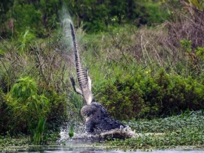 巴西湿地美洲豹轻松捕猎鳄鱼