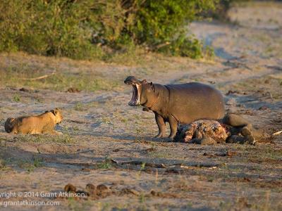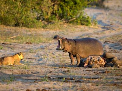 非洲河马怒吼赶走狮子独享小象尸体(神秘的地球配图) (神秘的地球报...