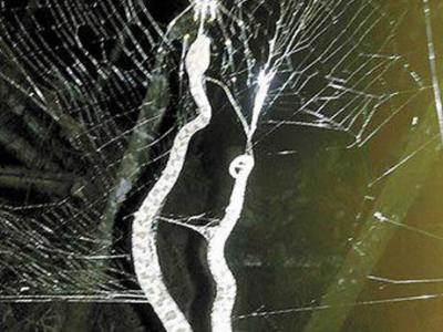 台湾人面蜘蛛捕获大头蛇 (神秘的地球报道)据台湾《中国时报》:台湾云林县古坑...
