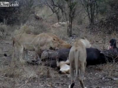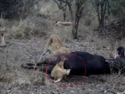 南非幼狮开餐心急 头卡水牛肛门