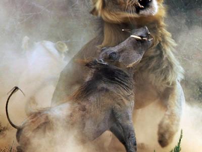 南非冒失疣猪两次闯入狮群最终成猎物 (神秘的地球)在南非东开普省的阿多大...