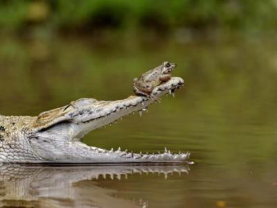 勇敢青蛙安坐在鳄鱼鼻子上 (神秘的地球)据环球网:英国《每日邮报》3...