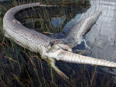 9年前,在美国佛罗里达州,一条巨蟒试图吞下一条大鳄鱼,最终身体爆裂而亡。 ...