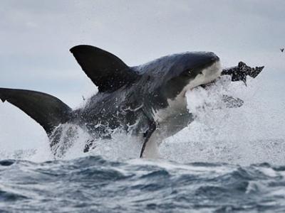 南非大白鲨捕食海豹用力过猛崩掉牙齿