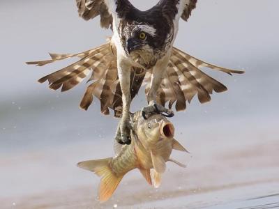 摄影师在立陶宛捕捉到鱼鹰捕食鲤鱼的精彩